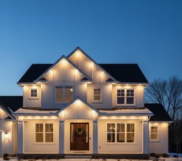 For stunning curb appeal, use warm white lights to define your home's architecture. Tracing the roofline, gables, pillars, and window frames with precision creates a structured, sophisticated, and high-end look. It's a grand statement that feels classic and inviting.