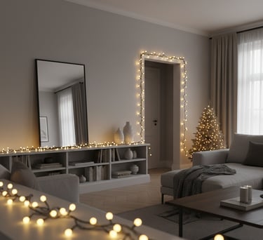 Use strands of warm white lights beyond the tree. Drape them over mirrors, frame interior doorways, or line the top of a bookshelf. In modern homes with neutral or gray color palettes, this "golden glow" is the fastest way to add instant warmth and make the space feel inviting for the holiday