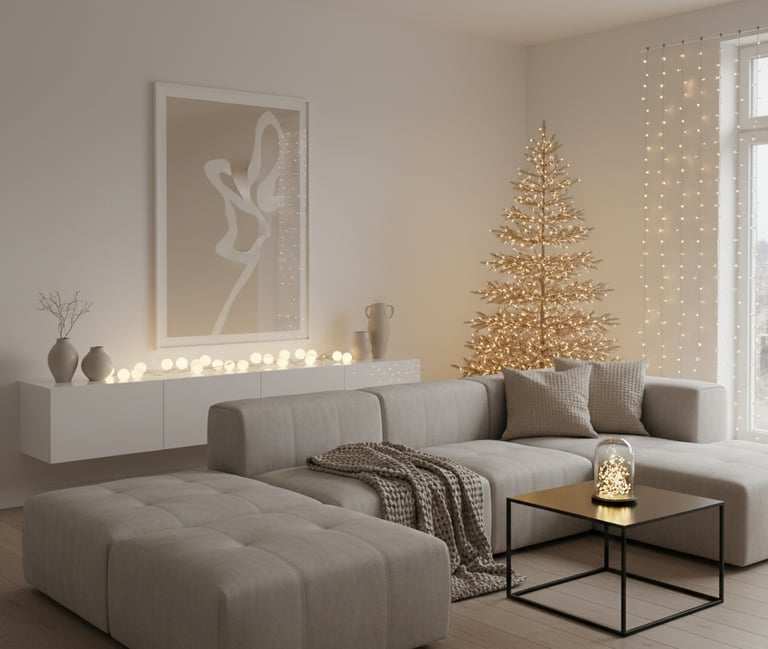 Warm white lights are the key to making minimalist and neutral-toned interiors feel festive. They add all the holiday spirit you need without introducing color or visual clutter, perfectly complementing a clean, serene design scheme.