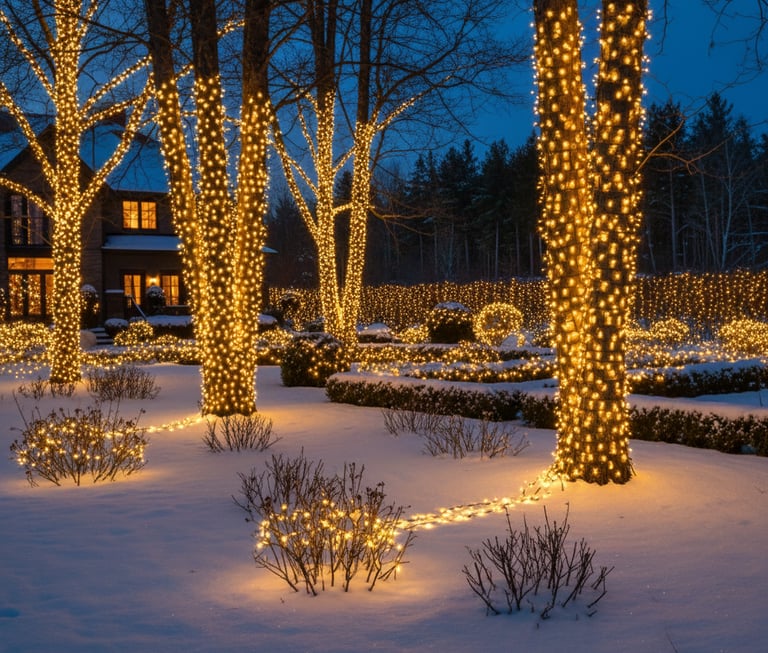 Don't let your garden go dark for the season. Wrap tree trunks in lights, drape strands over dormant bushes, or use net lights on snowy hedges. This technique creates a magical, fairytale landscape, adding depth and interest to your yard long after the sun has set.