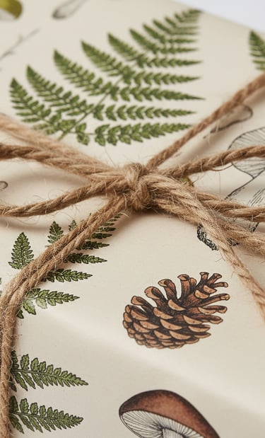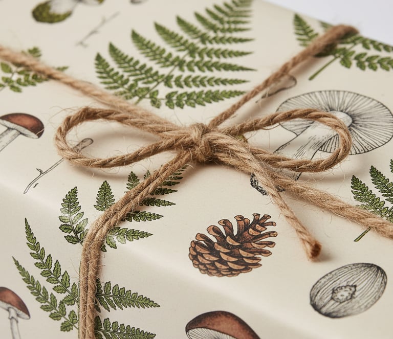 Bringing the outdoors in continues to be a major interior design theme, and it has naturally extended to gift wrap. Instead of cartoonish holly, look for scientific, botanical-style illustrations of ferns, pinecones, mushrooms, and woodland creatures.