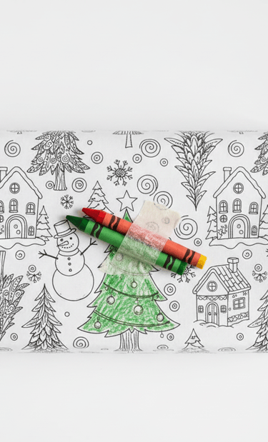 How to style it: For coloring paper, tape a small pack of crayons to the top of the box as part of the gift topper.