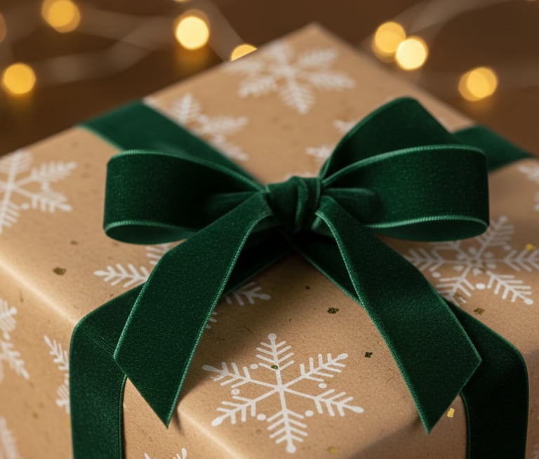 How to style it: Pair simple brown kraft paper with a velvet ribbon in a deep emerald or burgundy to create a striking contrast between the rustic paper and the luxurious fabric.