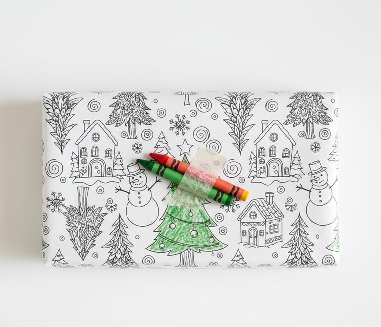 Customization is a key driver for 2025. This includes wrapping paper printed with the recipient's face (often used humorously) or "coloring book" wrapping paper that features black-and-white outlines of holiday scenes, intended for the giver (or receiver) to color in.